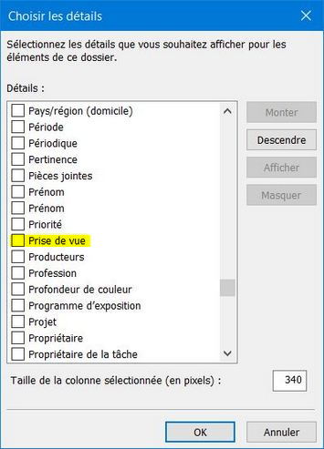 Pour un dossier de photos, vous déroulez la liste jusqu'à rencontrer l'attribut "Prise de vue", que vous sélectionnez.